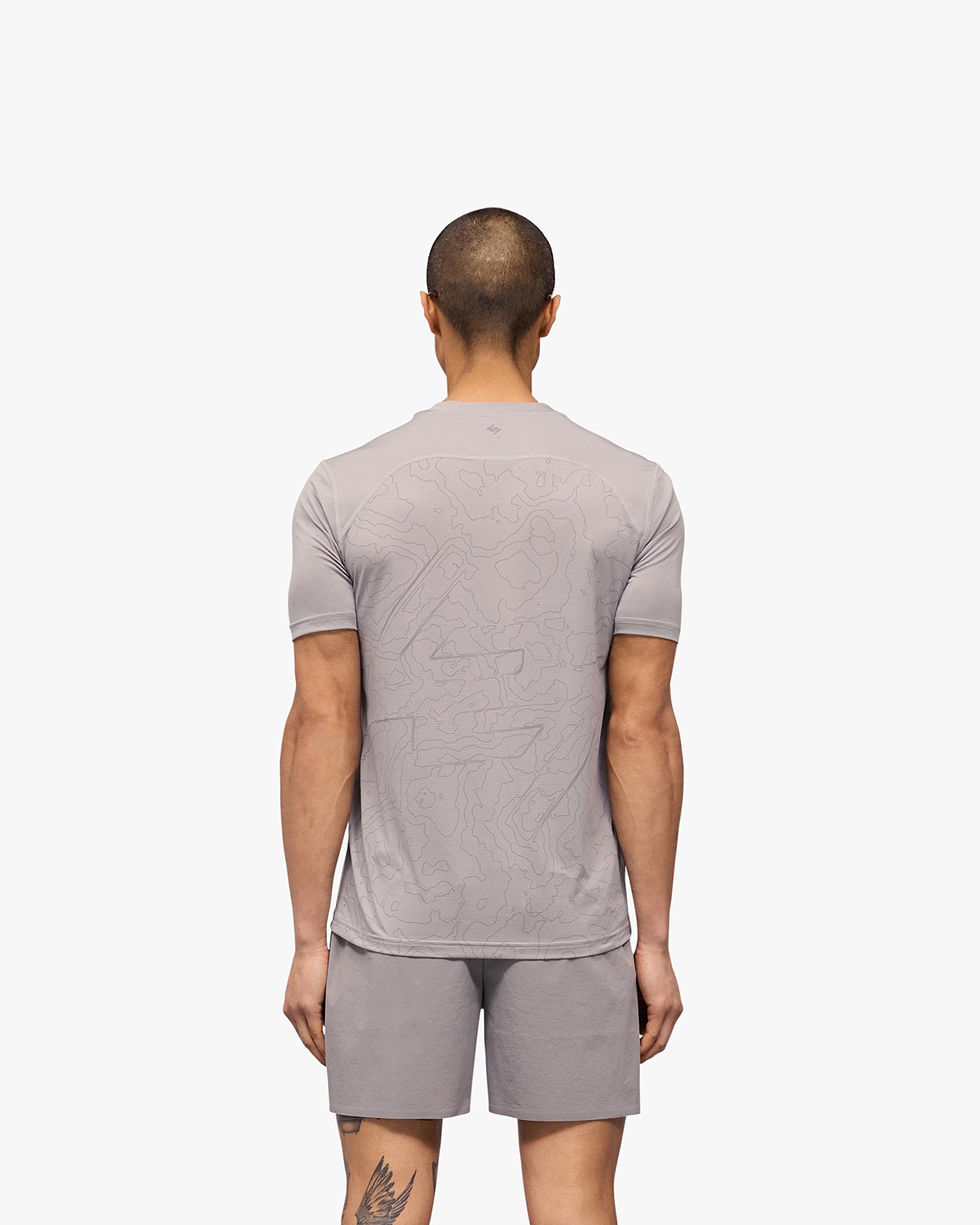 Designed to perform, the 247 Contour Run T-Shirt in Titanium is a premium technical innovation. It showcases a contour print to the back, inspired by the hills of Rivington. Crafted with a mesh construction, this running t-shirt is breathable, sweat wicking, and quick drying, ensuring ultimate comfort during high intensity runs. The antibacterial finish maintains freshness, while the regular, true to size fit is perfectly balanced for complete comfort. Model Measurements: Model is 187cm and 75kg wearing size M