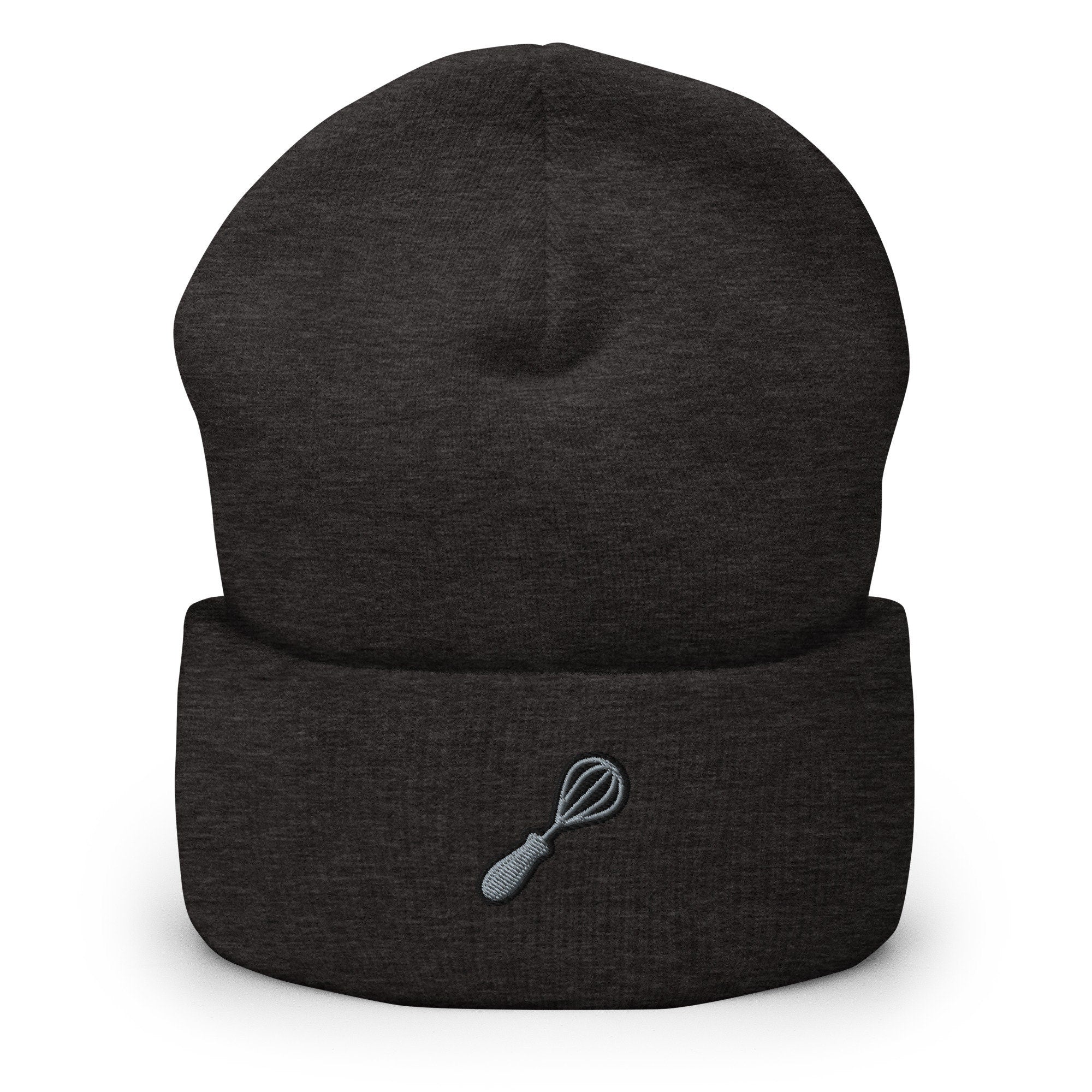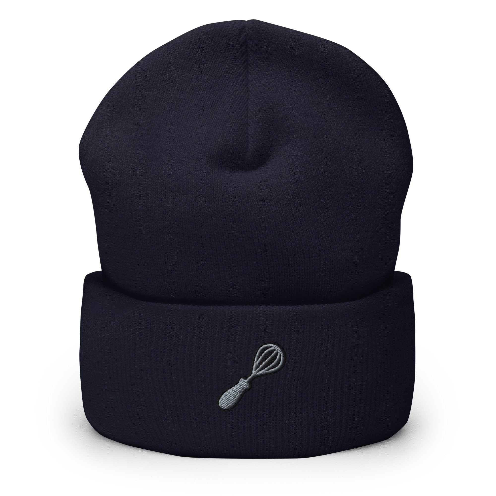 Baking Gift for Baker, Whisk Embroidered Beanie, Handmade Cuffed Knit Unisex Slouchy Adult Winter Hat Cap Gift