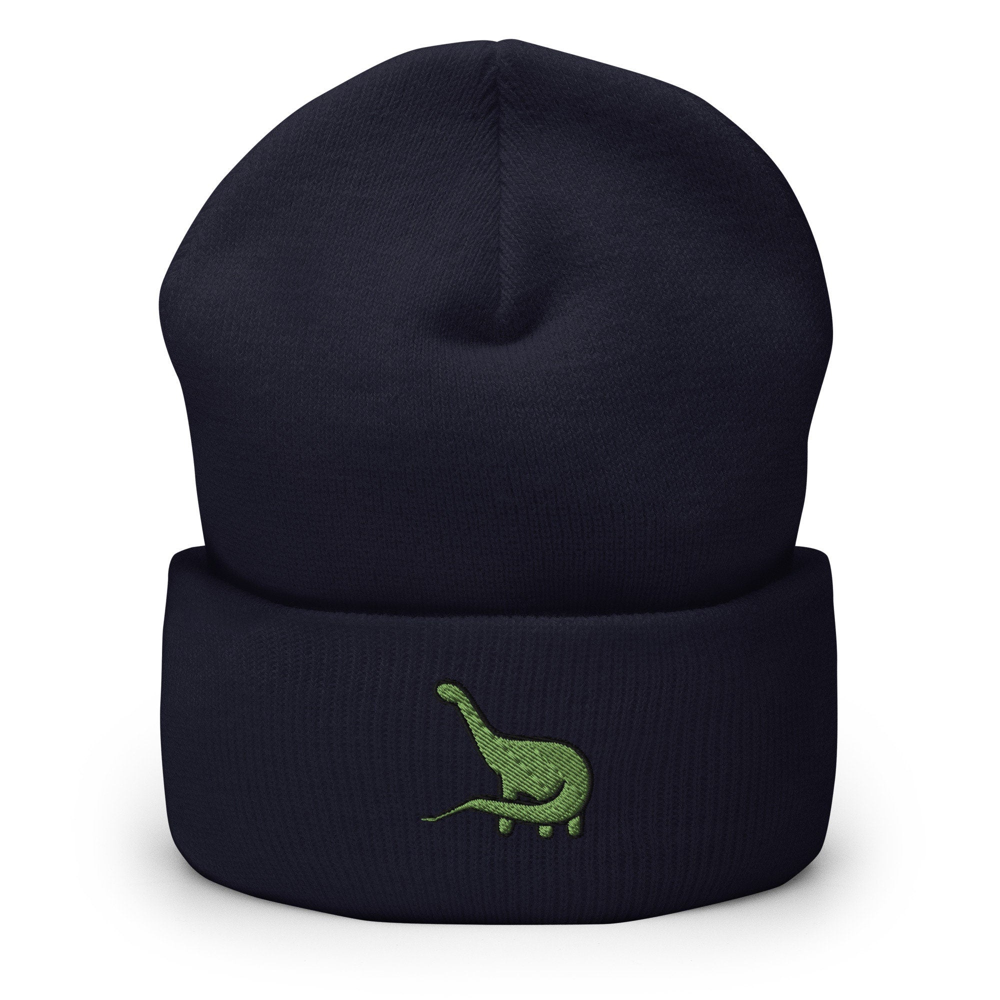 Brotosaurus Dinosaur Embroidered Beanie, Handmade Cuffed Knit Unisex Slouchy Adult Winter Hat Cap Gift
