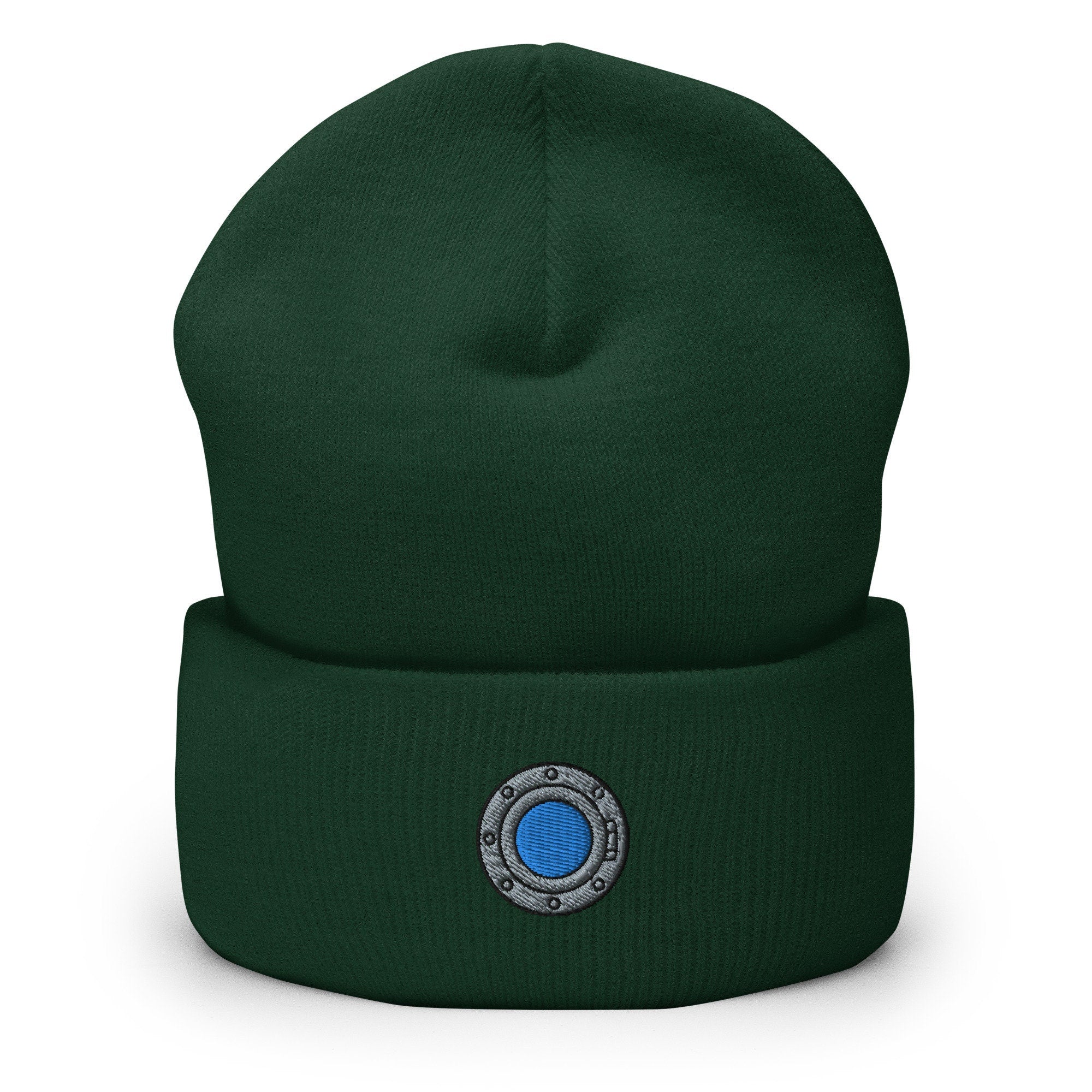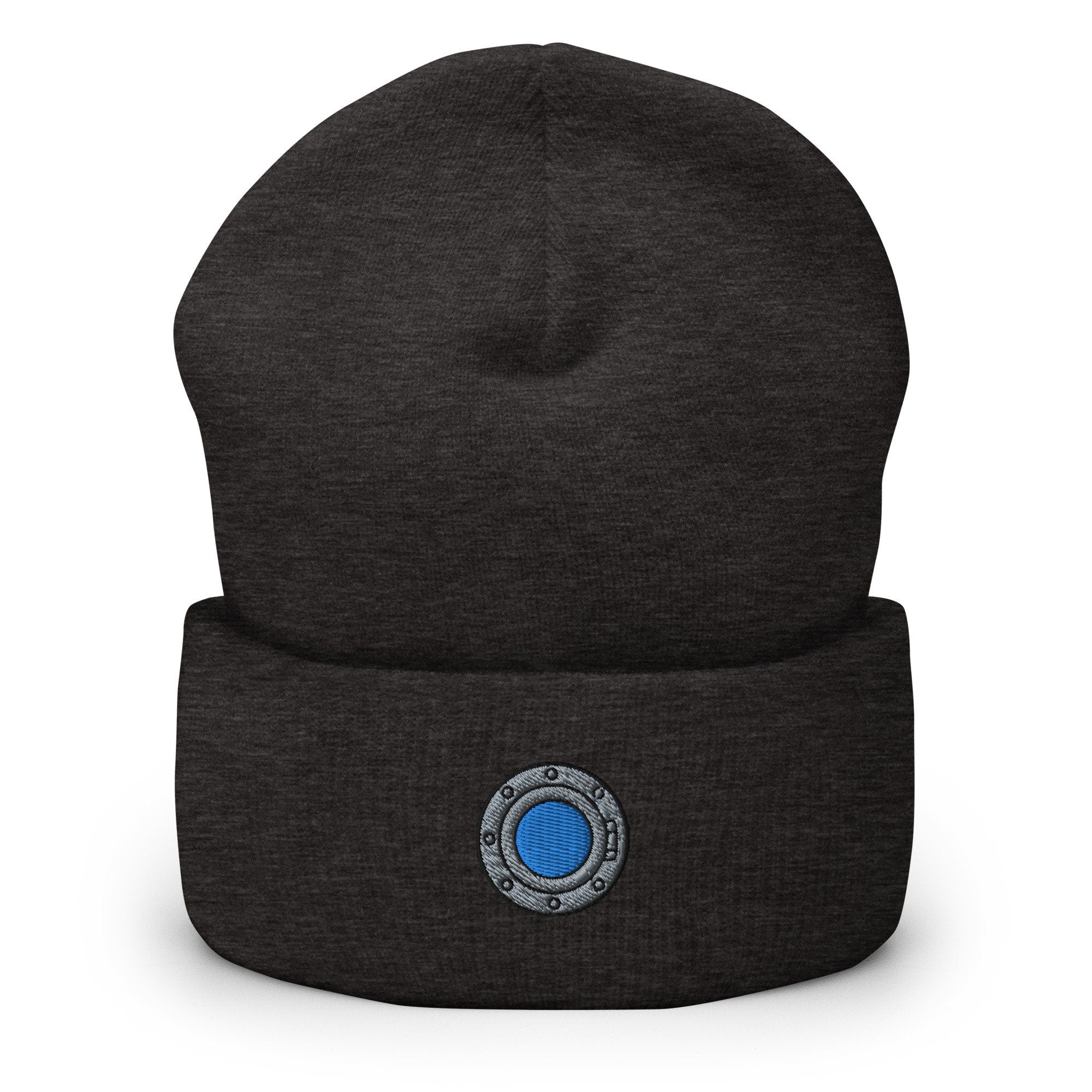 Bull’s-Eye Window, Ship Porthole Embroidered Beanie, Handmade Cuffed Knit Unisex Slouchy Adult Winter Hat Cap Gift