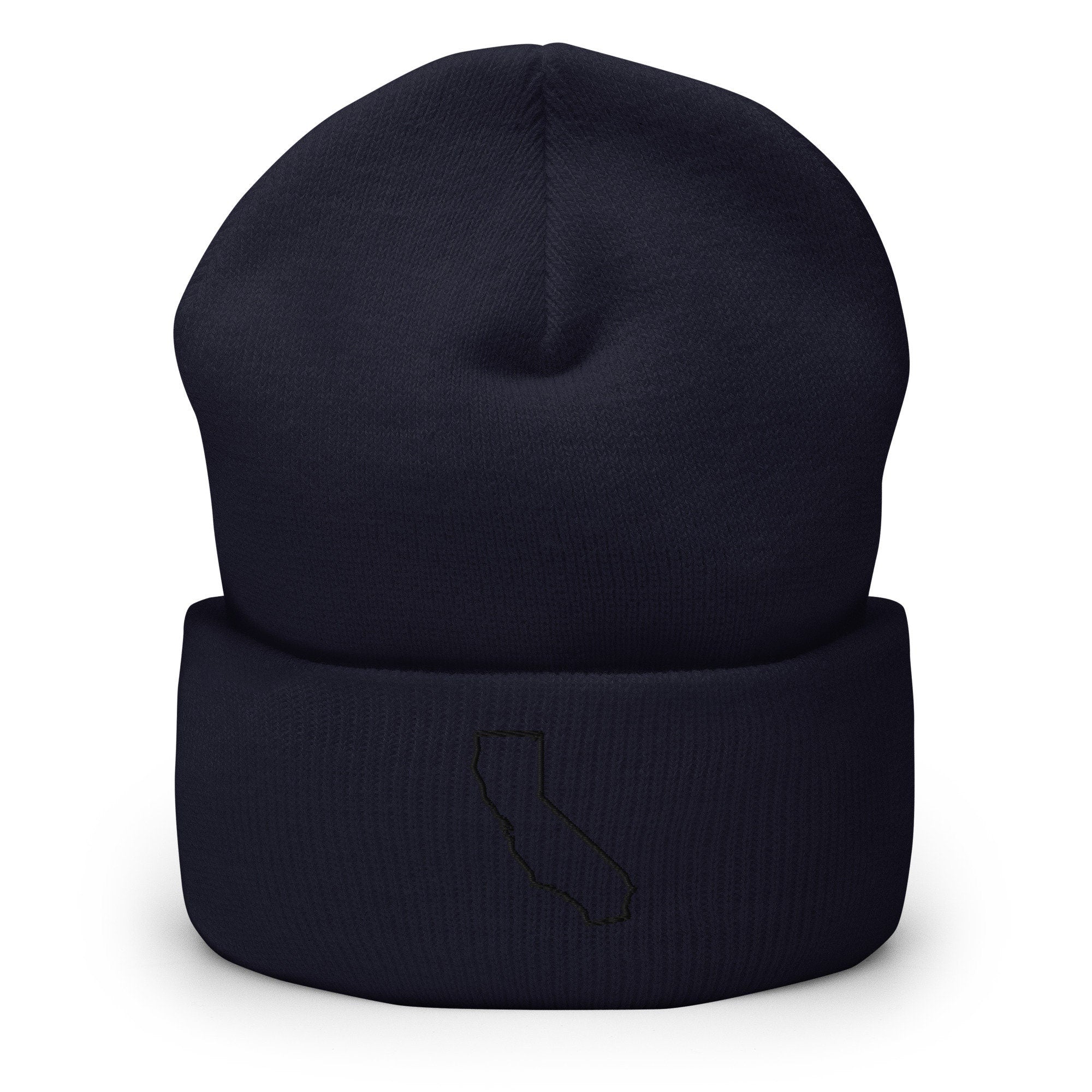 California State Map Embroidered Beanie, Handmade Cuffed Knit Unisex Slouchy Adult Winter Hat Cap Gift