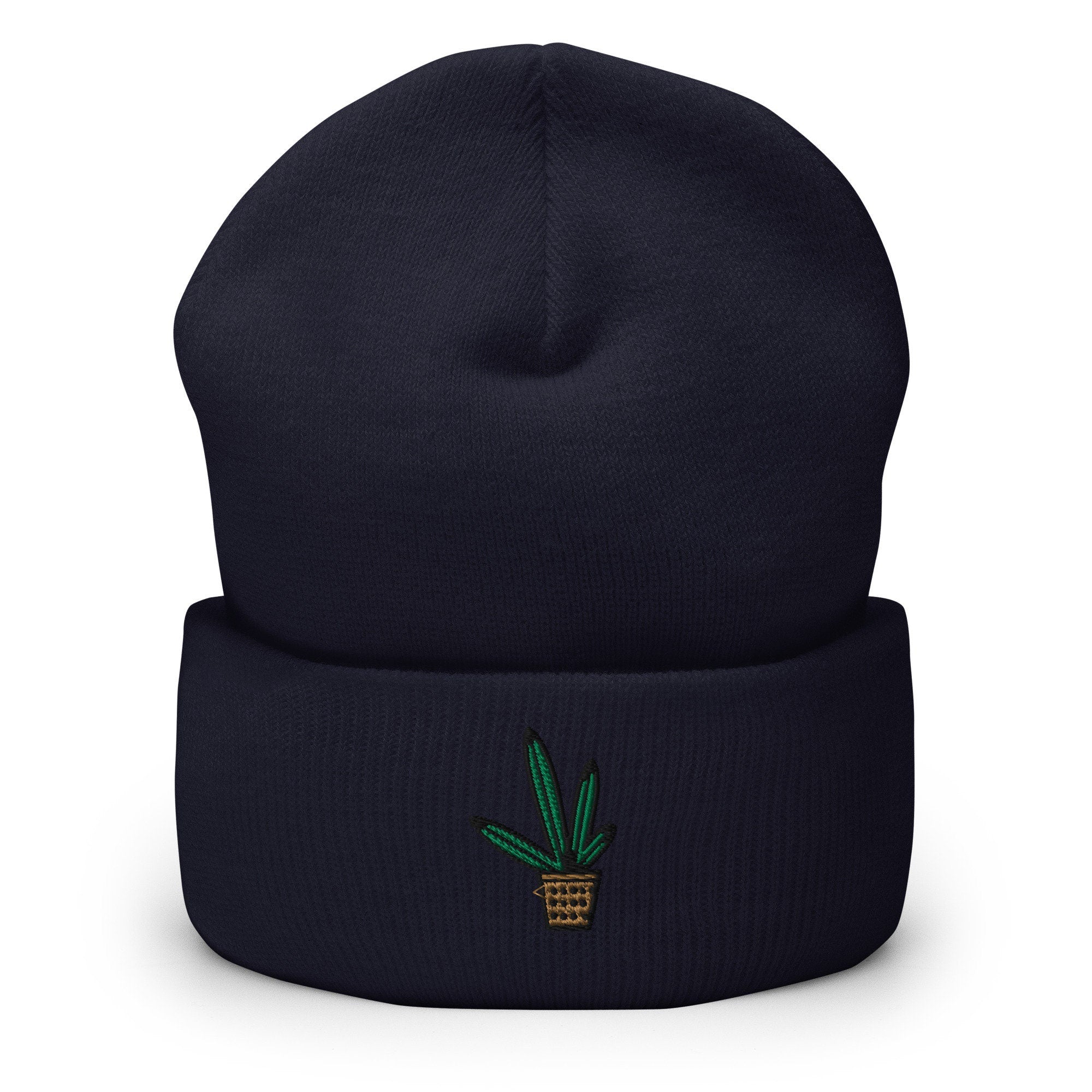 Cape Aloe Succulent Houseplant Embroidered Beanie, Handmade Cuffed Knit Unisex Slouchy Adult Winter Hat Cap Gift