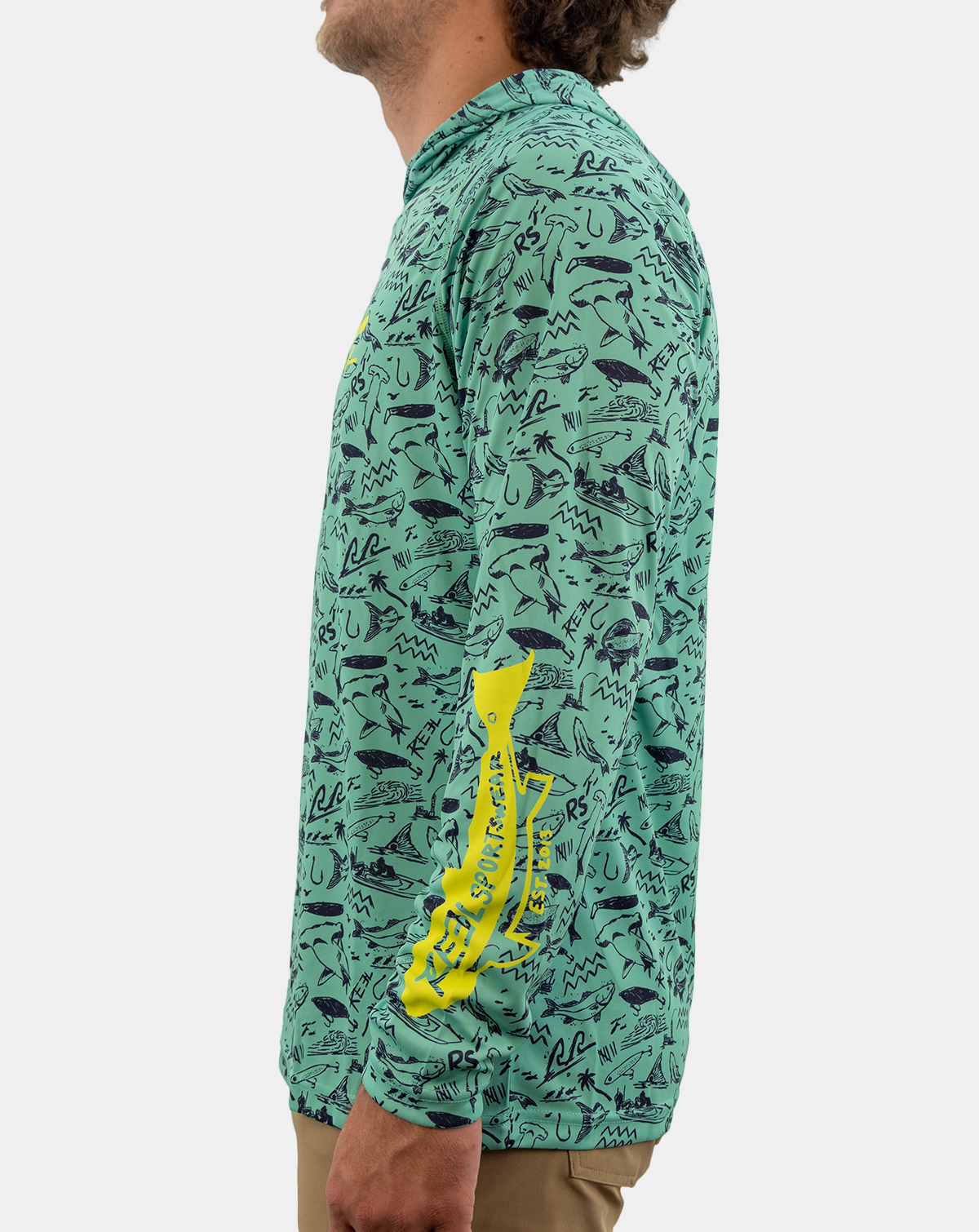 Step into your next adventure with the Coastal Performance Hoody for anglers – Gulf Wizard. This hoody is more than just apparel; its your shield against the sun and your companion in fishing. Designed with a custom coastal pattern, it embodies the untamed spirit of the Gulf Coast. Stay cool, comfortable, and protected with UPF 50+ sun protection, moisture-wicking tech, and full range of motion. Get ready to conquer the waters with the Gulf Wizard Hoody!
