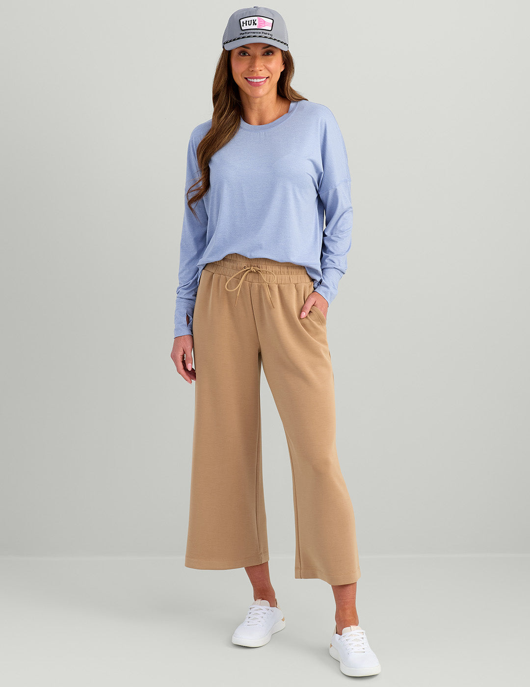 Experience ultimate comfort with our Bayside Wide Leg Crop pants in luxurious spacer knit fabric. Perfect for travel or cool coastal evenings, these pants offer a flattering fit and versatility. Pair them with our 1/2 Zip Hoodie for a complete set. Elevate your wardrobe with these stylish, cozy pants . Marl color. H6200090-201