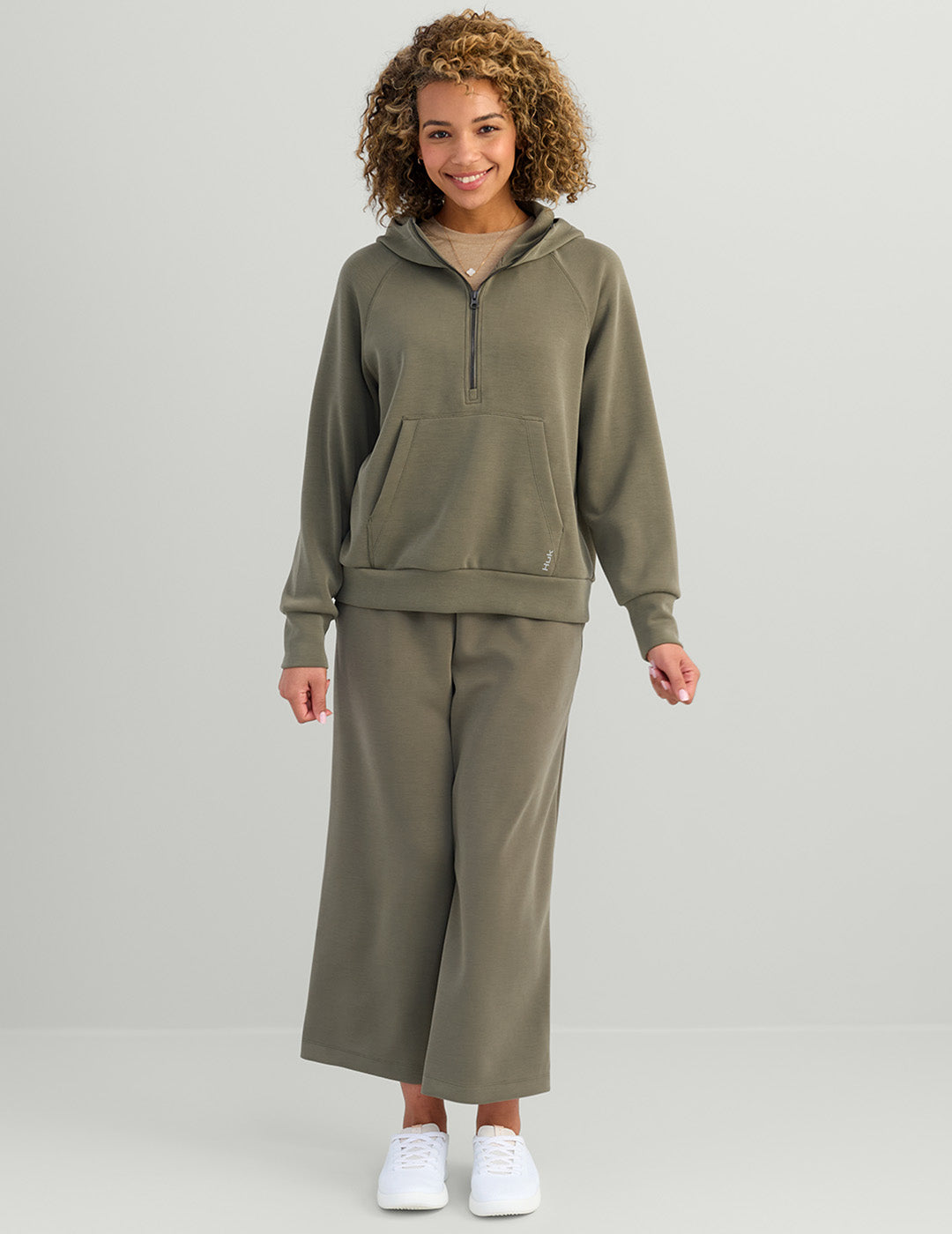Indulge in the luxurious comfort of the Moss Spacer Knit Hoodie, perfect for leisurely getaways and evening strolls along the beach. Crafted from soft spacer knit fabric, this semi-cropped hoodie offers a loose fit that is both stylish and versatile. Pair it with matching pants for a coordinated look or dress it up with jeans. Elevate your wardrobe with this essential piece. Style code: H6130030-316