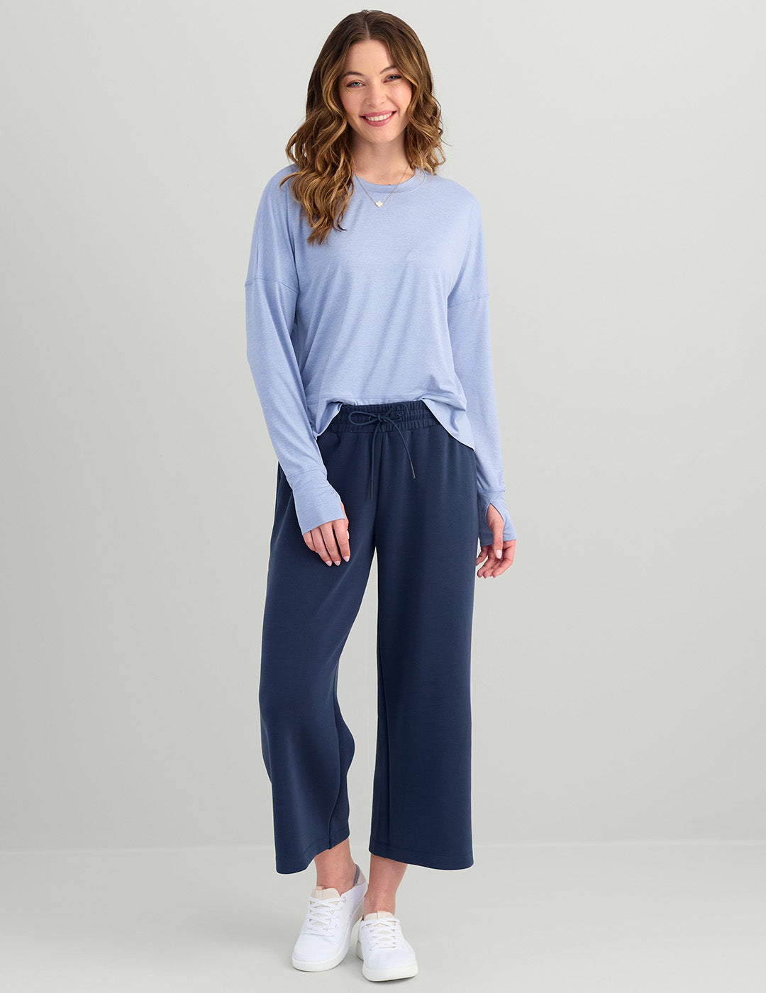 Experience ultimate comfort with our Navy Wide Leg Crop Pants for women. Crafted from premium spacer knit fabric, these pants are perfect for travel and coastal evenings. Versatile and stylish, they can be paired with our 1/2 Zip Hoodie for a complete look. Elevate your wardrobe with these luxurious pants today.