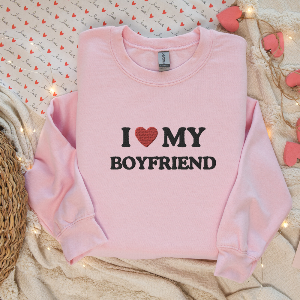 Embroidered I Love My Boyfriend, I Heart My Boyfriend, Sweatshirt, Funny Crewneck Sweater Gift for Her, Him