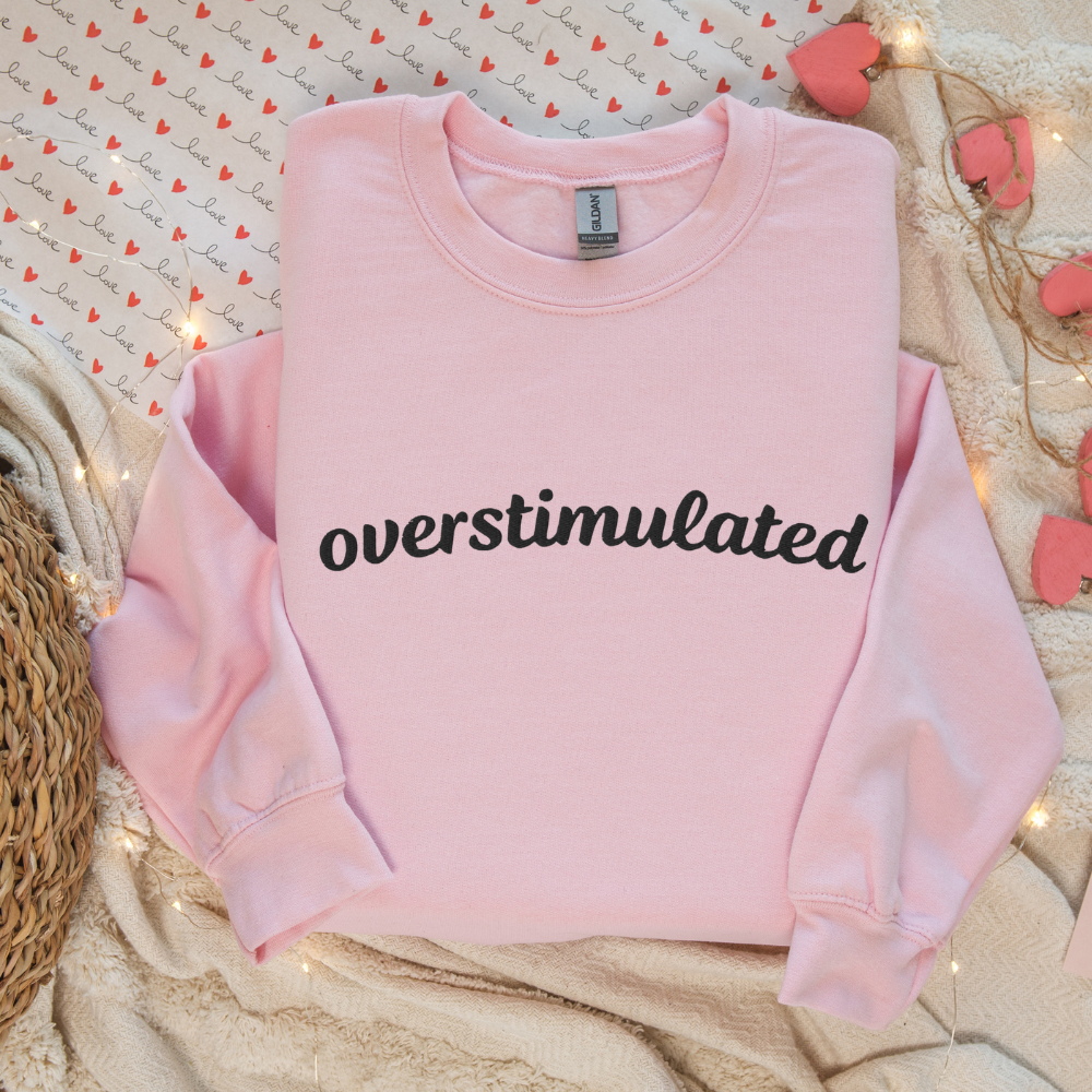 Embroidered Overstimulated, Anixety,Sweatshirt, Funny Crewneck Sweater Gift for Her, Him