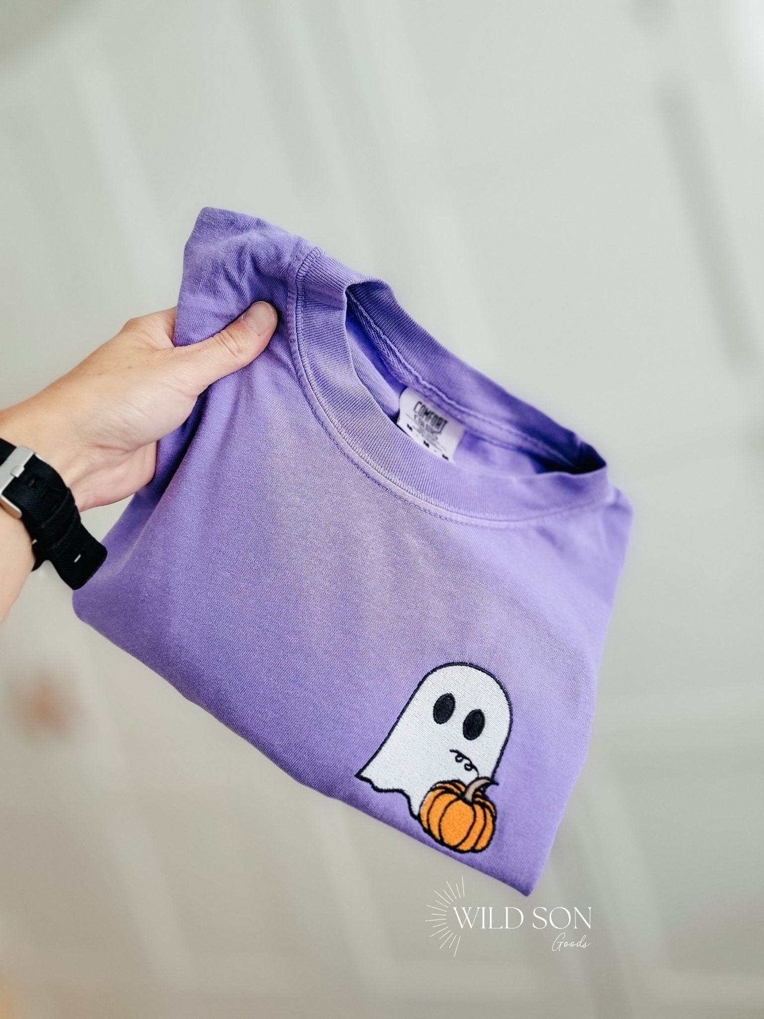 Cute little ghost with a pumpkin! These have a vintage look and a lived in feel! Care Instructions: Machine wash cold gentle cycle. Tumble dry low. No bleach.