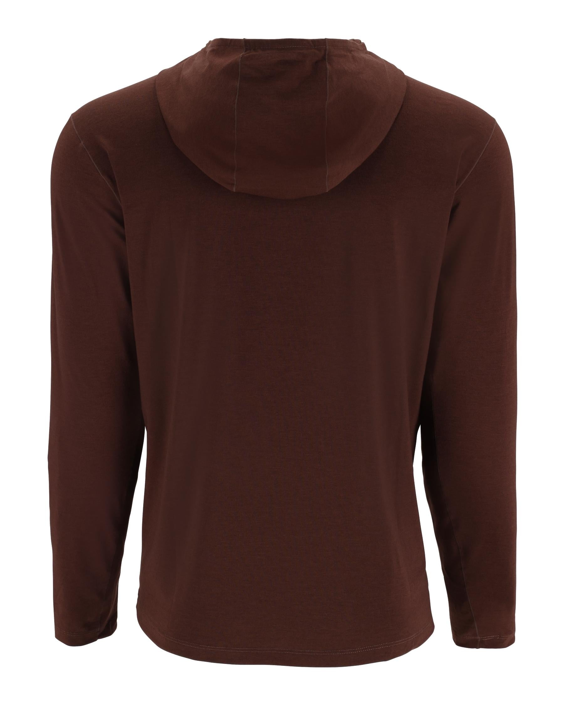Experience ultimate comfort with the Mens Soft Glades Hooded Shirt, perfect for warm days. Crafted from quick-drying recycled polyester, Tencel, and Spandex blend. This shirt offers breathability, sun protection, and stay-put performance with a thumb loop. UPF 30+ rating for added sun protection. Ideal for fishing, outdoor activities, or casual wear. Available in multiple colors and sizes. Stay cool and protected in style!