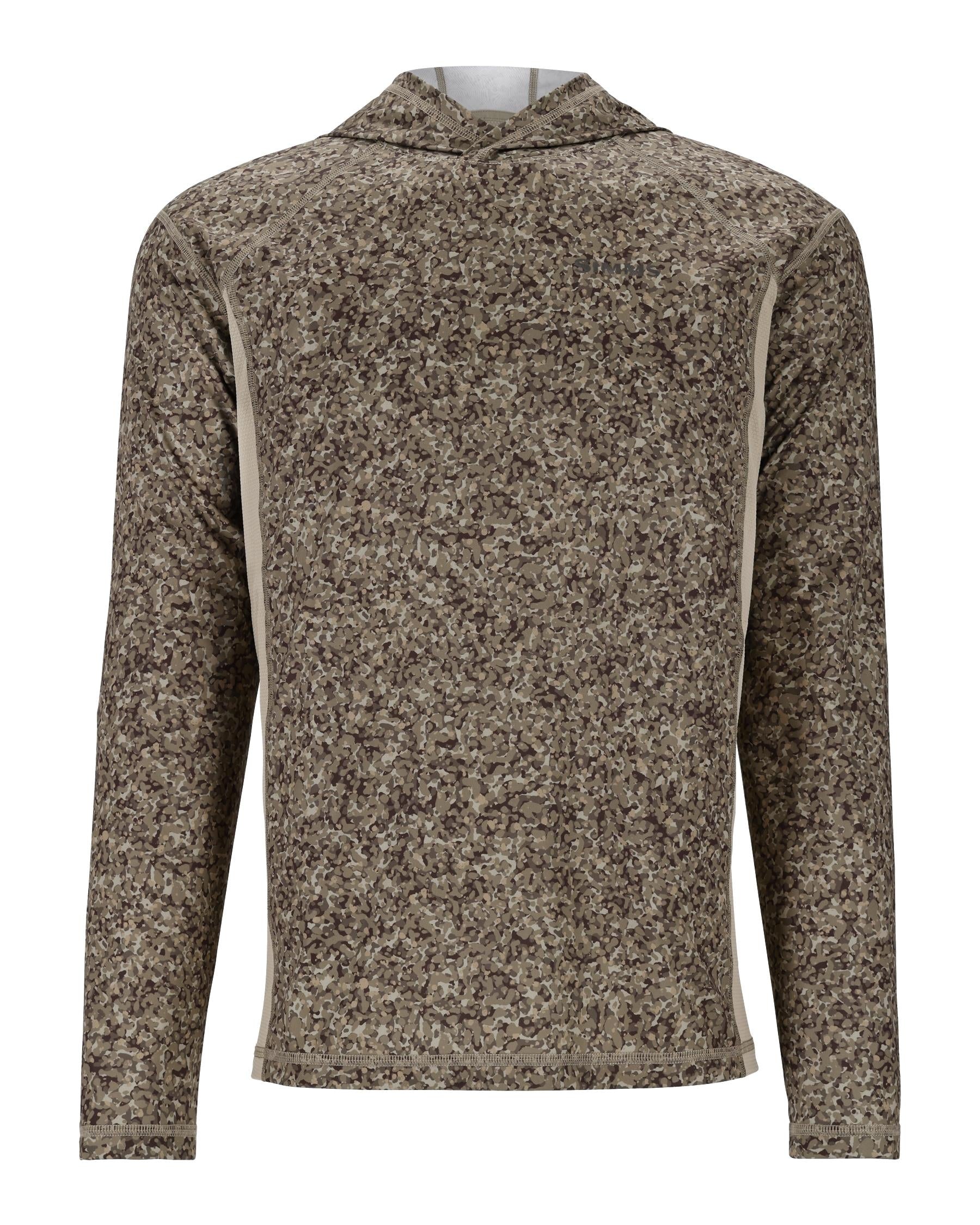 The Mens Simms Challenger Solar Hoody is designed for hot and sticky fishing conditions, featuring an improved full-coverage hood for maximum sun protection. Made with UPF30+ fabric, this hoody offers a comfortable fit with moisture-wicking properties. The lightweight jersey knit sleeves and front allow for easy movement, while the Jacquard fabric on the back and sides enhances breathability. Stay comfortable and protected from the sun with this fishing essential.