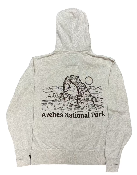 Indulge in unrivaled comfort and fashion with our Oatmeal Delicate Arch Sketch Zip Hoodie showcasing the iconic Delicate Arch sketch on both front and back. Embrace warmth in style with the oatmeal heather hue, a full zip closure, and thumb holes for enhanced insulation. This trendy hoodie not only elevates your look but also supports National Parks, Forests, and Public Lands through a 4% donation . Meticulously crafted from a blend of 52% Cotton and 48% Polyester for durability. Care Instructions: Machine wash cold, air dry.