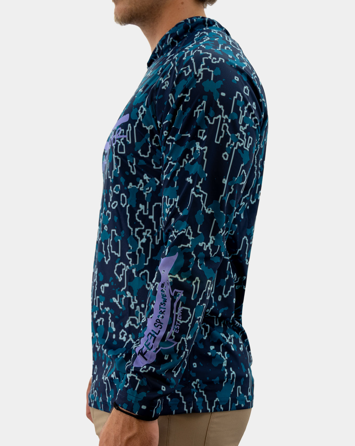Set sail on your next fishing venture with the Ocean Blues Fishing Hoody, where style meets unmatched performance. This hoody, engineered for fishing enthusiasts, features a unique color palette reflecting the ocean’s hues and a dynamic pattern inspired by nature. Made from 100% moisture-wicking polyester, it provides UPF 50+ sun protection to keep you dry, comfortable, and shielded from harmful rays. The lightweight design with radial sleeves ensures freedom of movement for casting and reeling in the big catches. Odor-resistant, quick-dry, and shrink-resistant properties make this hoody a reliable companion on the water, letting you embrace the elements with confidence and style.