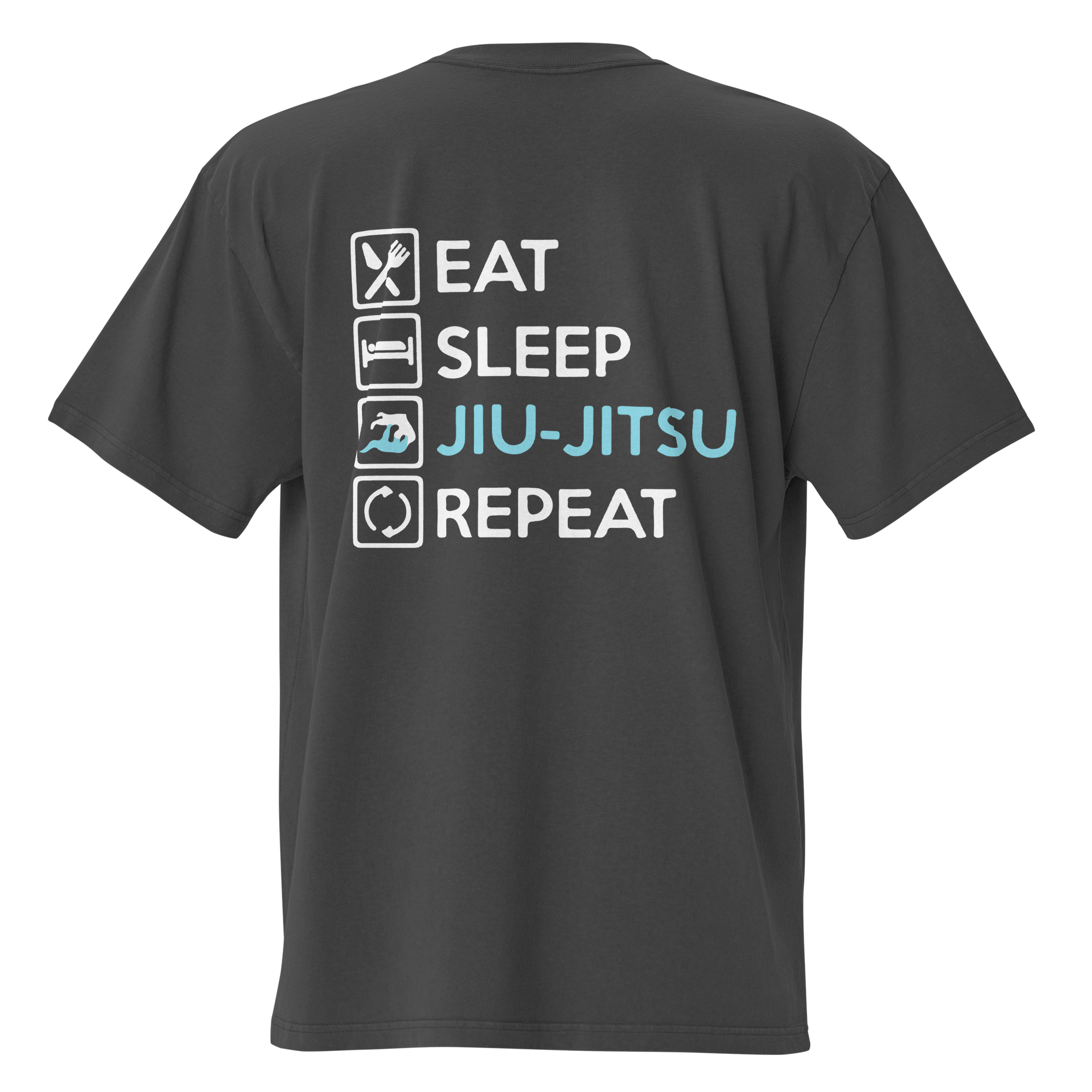 Experience the relentless spirit of Jiu Jitsu with our Oversized Jiu Jitsu Repeat T-Shirt in Black. Stay comfortable with 100% carded cotton and a boxy fit. This shirt embodies the daily grind of every grappler, featuring an oversized design perfect for your off-mat adventures. Grab yours now!