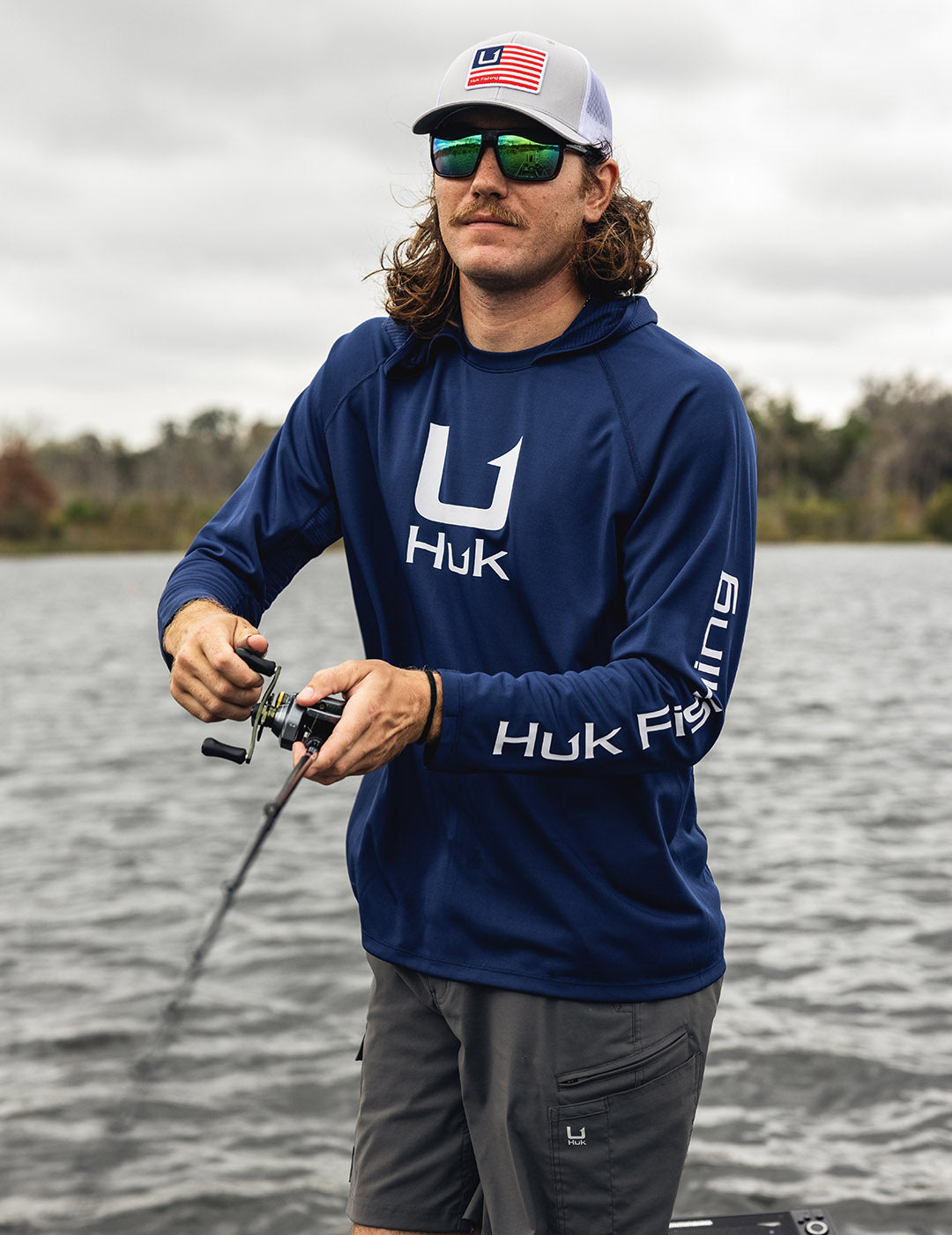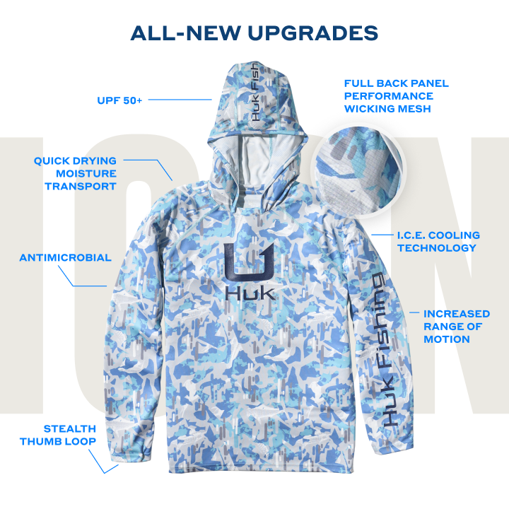 Experience the iconic performance of the HUK Performance Hoodie for men, featuring enhanced breathability with wicking mesh, 50+ UPF protection, and antimicrobial treatment for all-day comfort. The raglan sleeve cut ensures full range of motion while fishing. Upgrade your angling gear with this rod-bending hoodie designed to keep you dry, cool, and focused. Discover the rejuvenated successor of the original ICON shirt that kickstarted the brand 10 years ago and embodies angler-approved excellence. Available in short sleeve, long-sleeve, and hoodie variants. Model: H1200574-413.