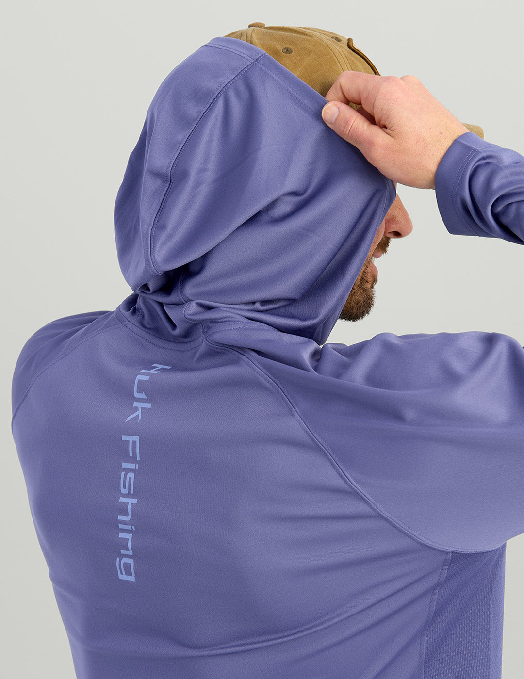 Stay protected with the Huk Performance Vented Hoodie, featuring +UPF 50 for all-day sun protection. This lightweight crew neck shirt with mesh sides is perfect for all weather conditions. The anti-microbial fabric ensures freshness, while superior breathability keeps you comfortable. Ideal for anglers, this Pursuit shirt is a versatile addition to your wardrobe. Order now!