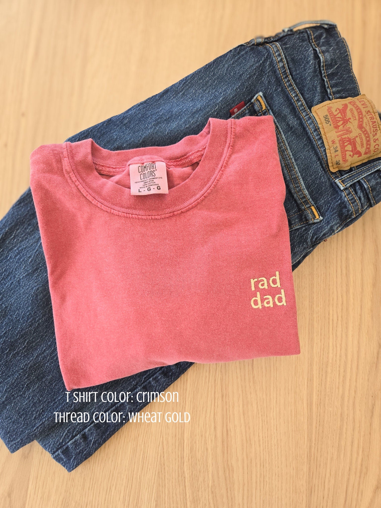 Gift a Father with one of these simple t-shirts! Fathers day gift, pregnancy announcement, or just because, Fathers will love these! Pre shrunk and garment dyed, these shirts get softer as you wash and wear them and last a lifetime! These have a vintage look and a lived in feel! Choose from many t-shirt and thread colors! Care Instructions: Machine wash cold gentle cycle. Tumble dry low. No bleach.