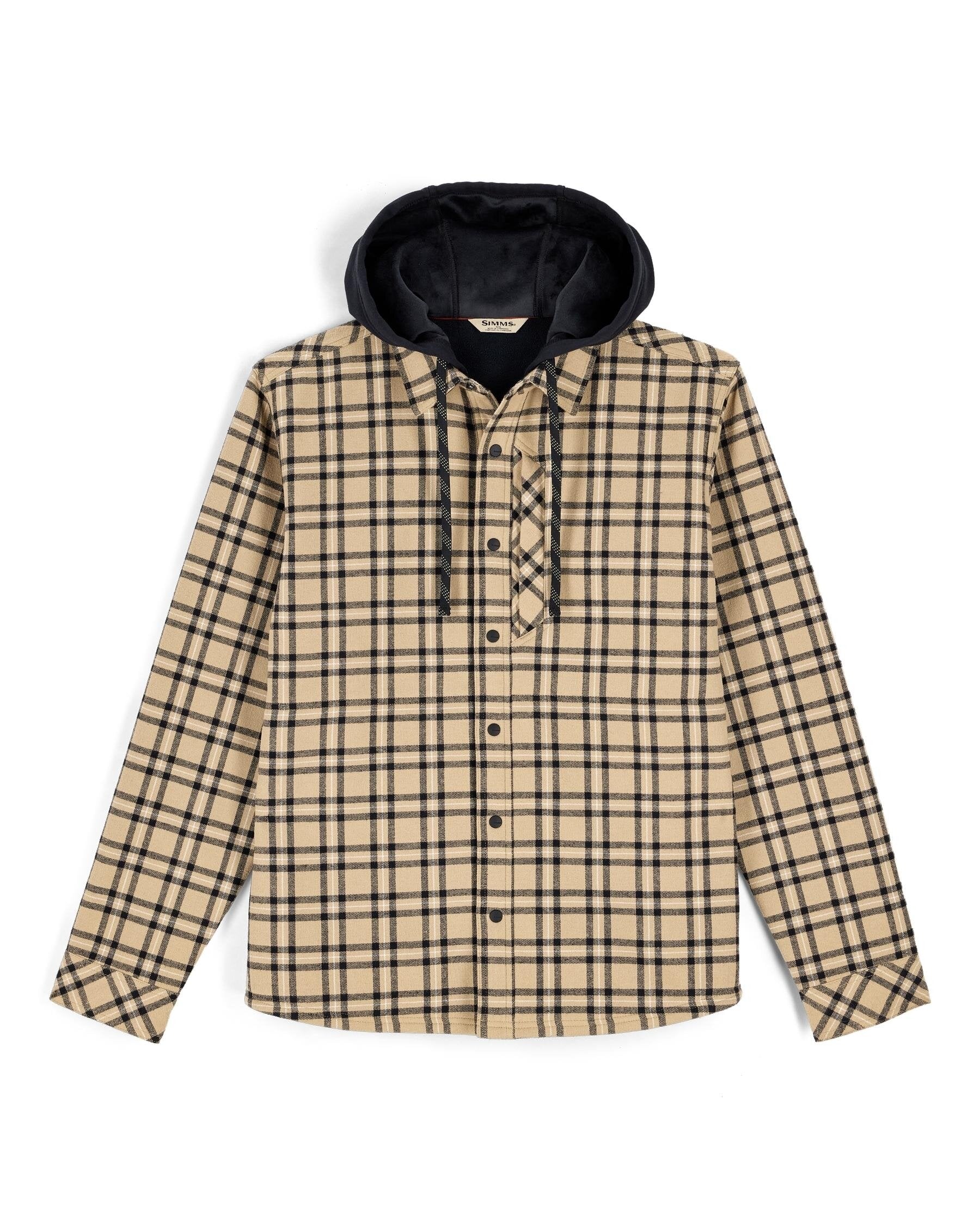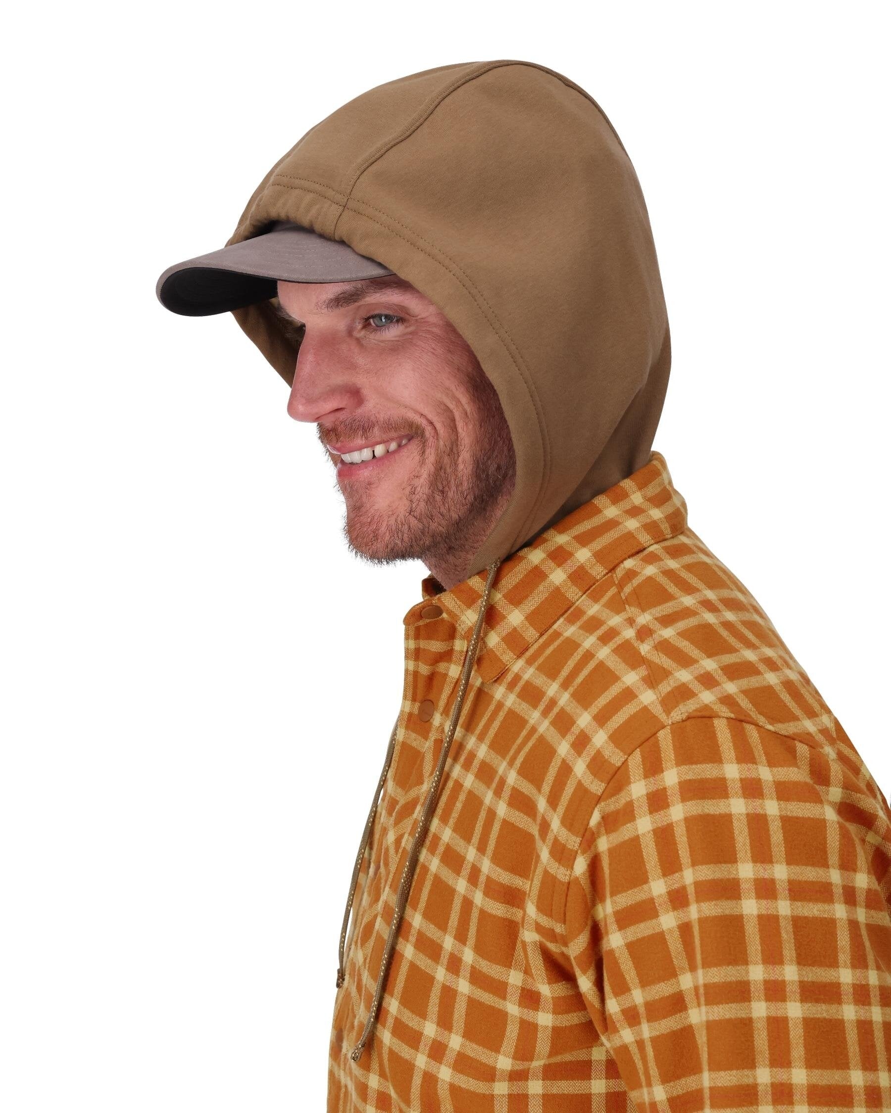 Experience the perfect blend of classic button-up style and hooded versatility in this toasty, bonded fleece hooded shirt jacket. Stay warm and comfortable with bonded fleece backer, snap-closure design, and adjustable drawcord hood. Keep your essentials secure in the side-entry chest pocket with a semi-auto lock zipper. Crafted from 100% Cotton Flannel bonded with Polyester Fleece, featuring heavyweight warmth for all your outdoor adventures, fishing trips, or casual outings. Embrace the ultimate fusion of style and functionality today!
