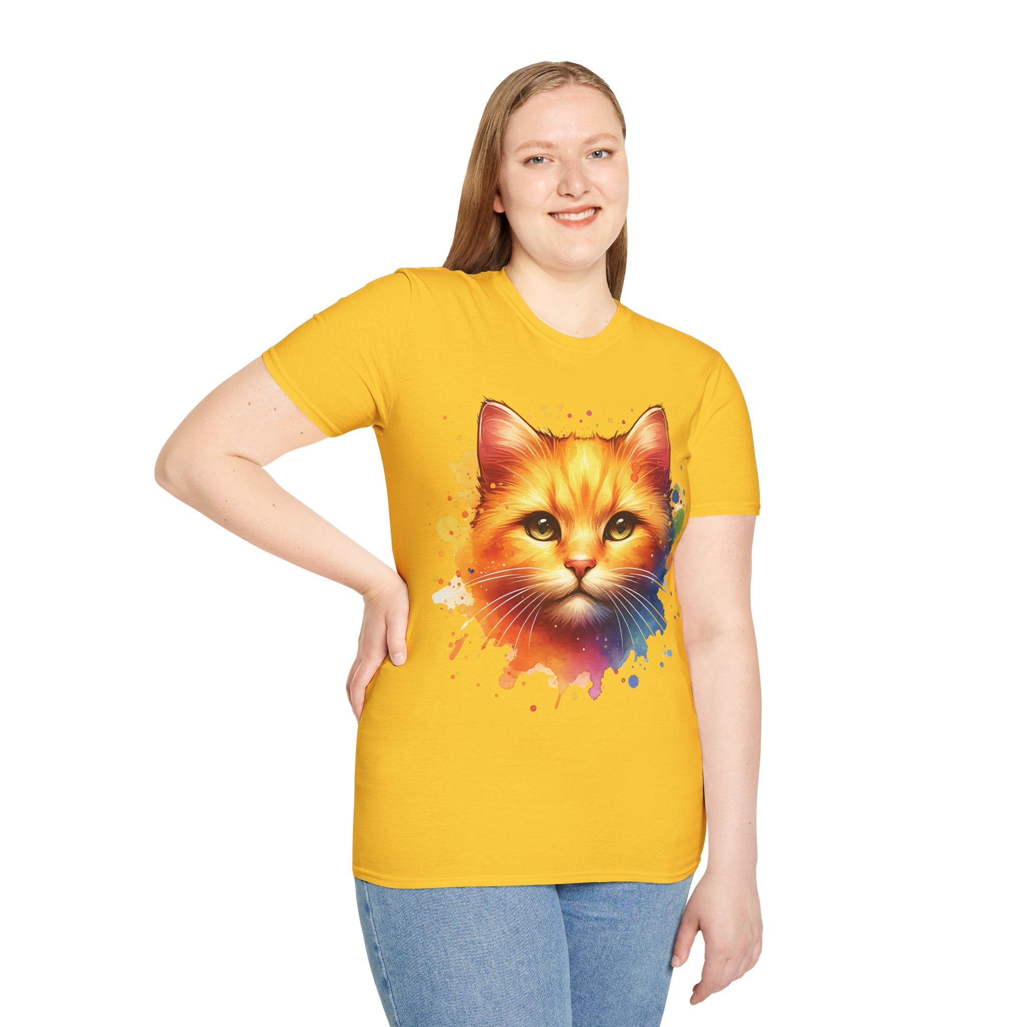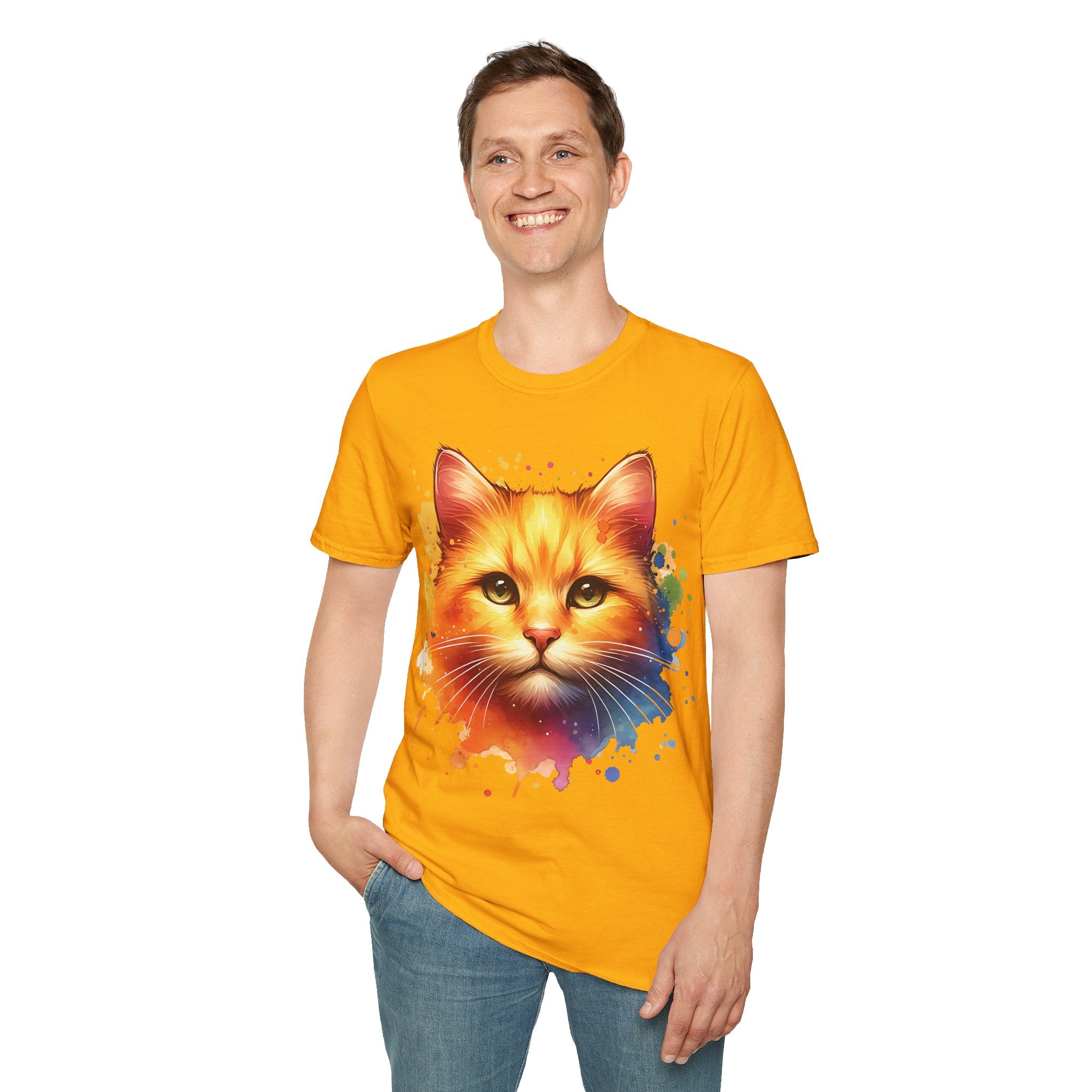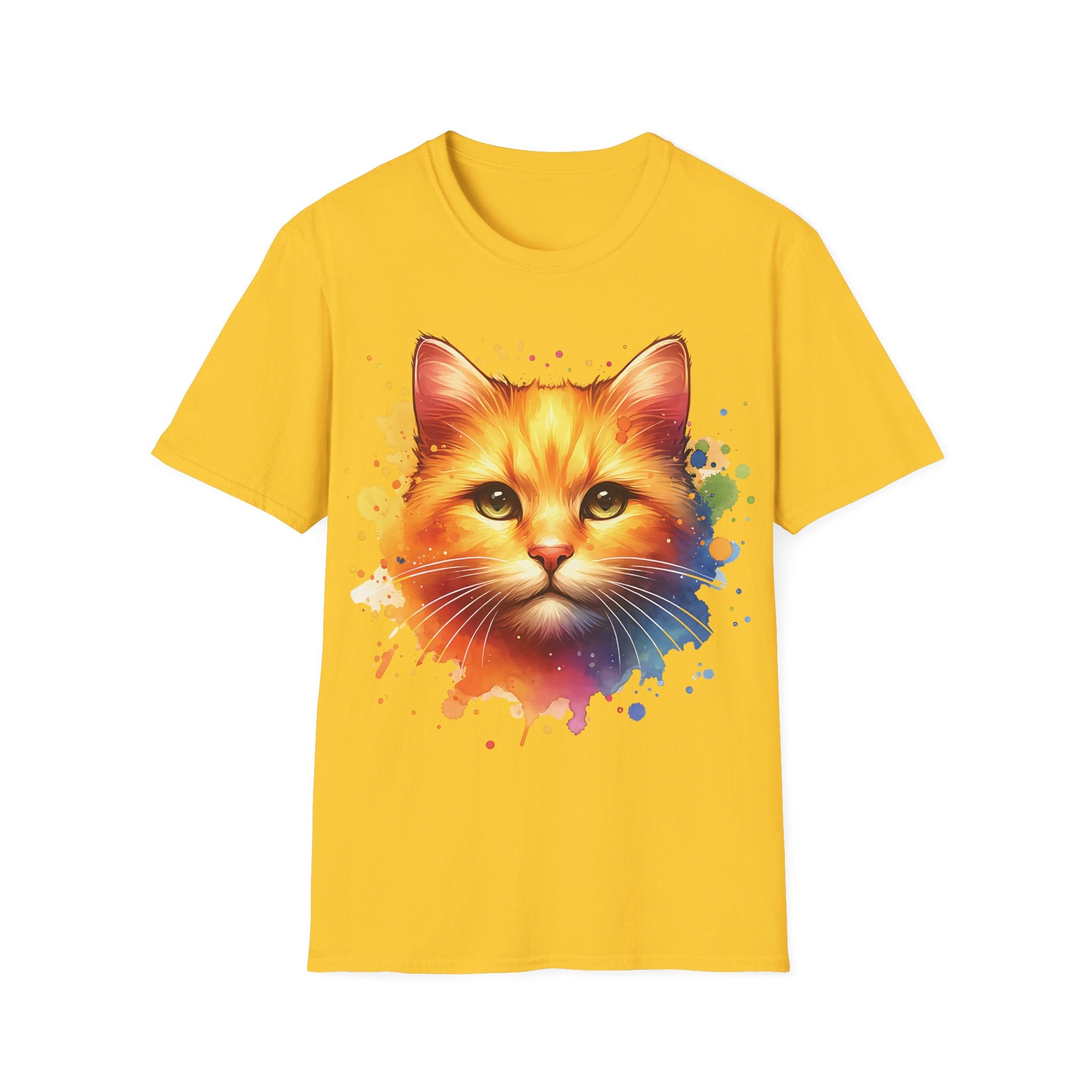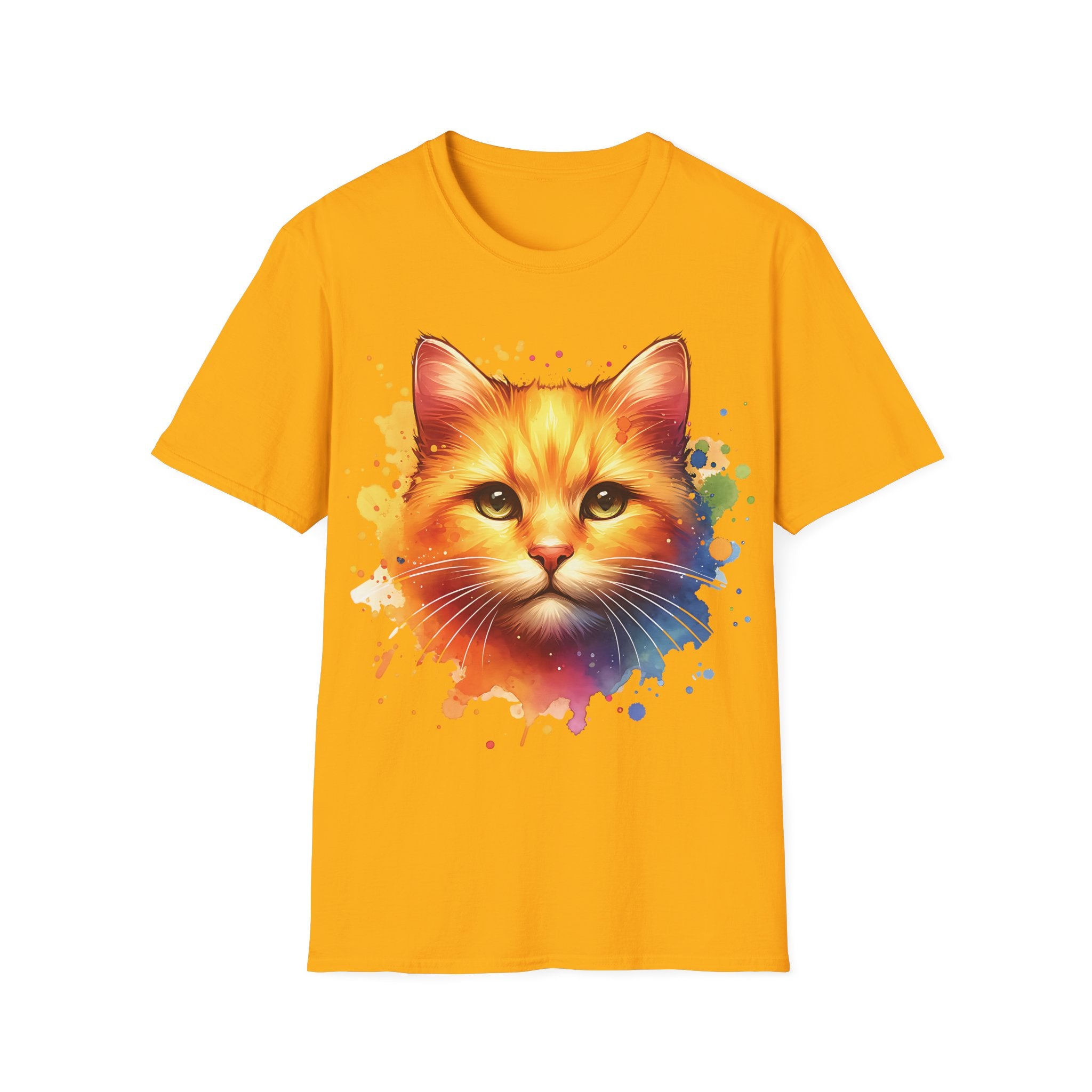 Watercolor Cat Head Cotton T-Shirt – Unisex Amber Eyes Style