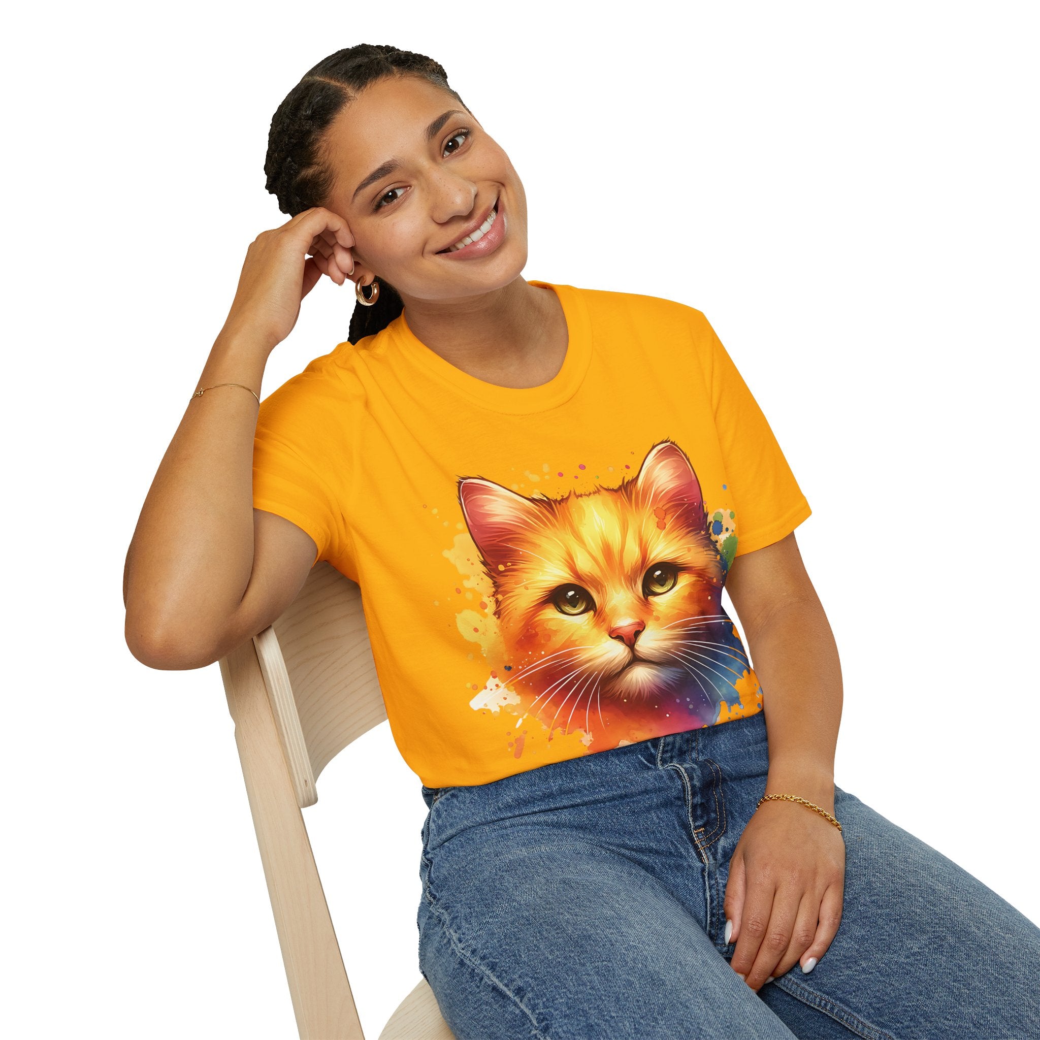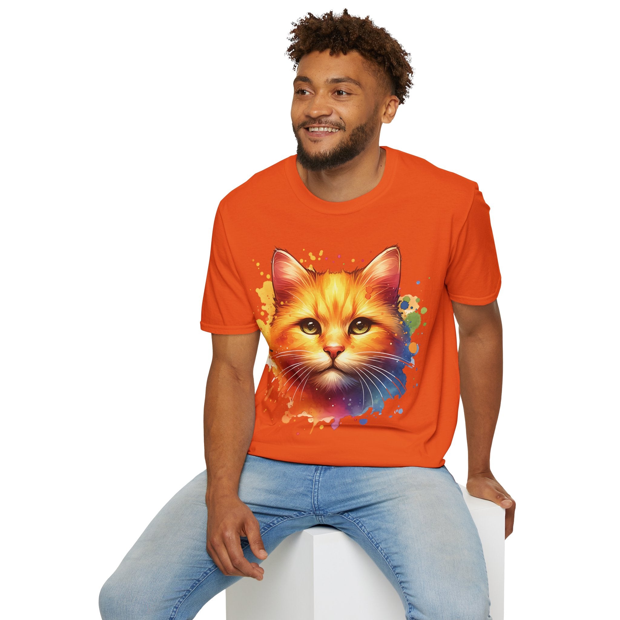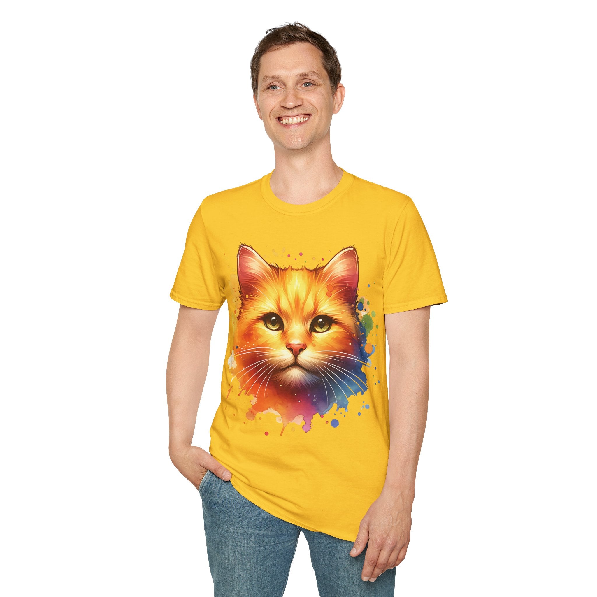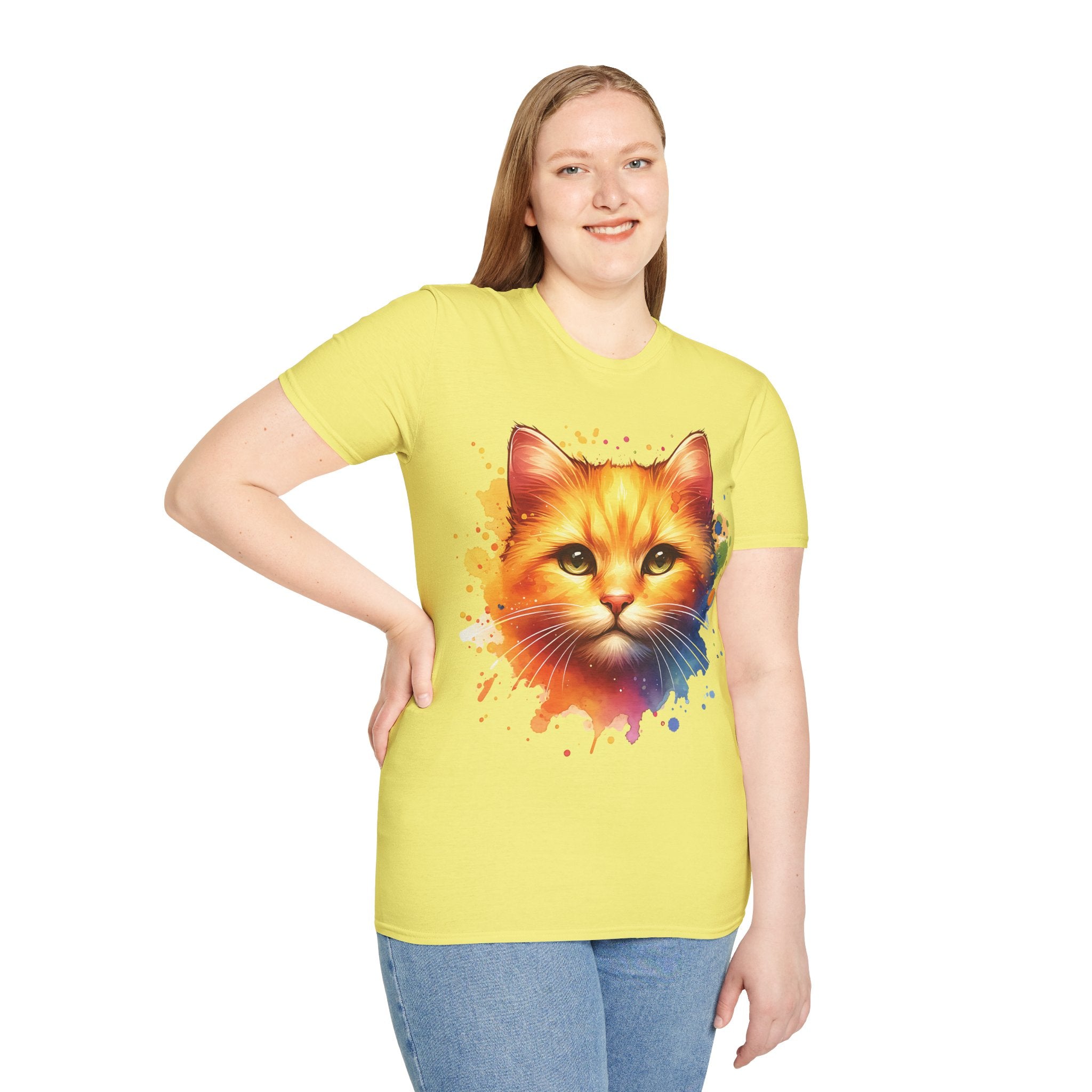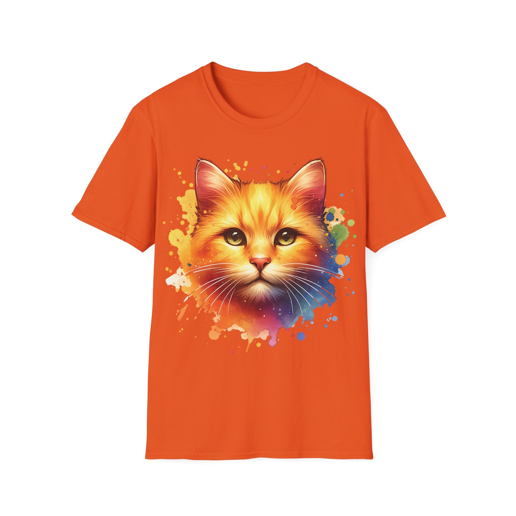 Watercolor Cat Head Cotton T-Shirt – Unisex Amber Eyes Style