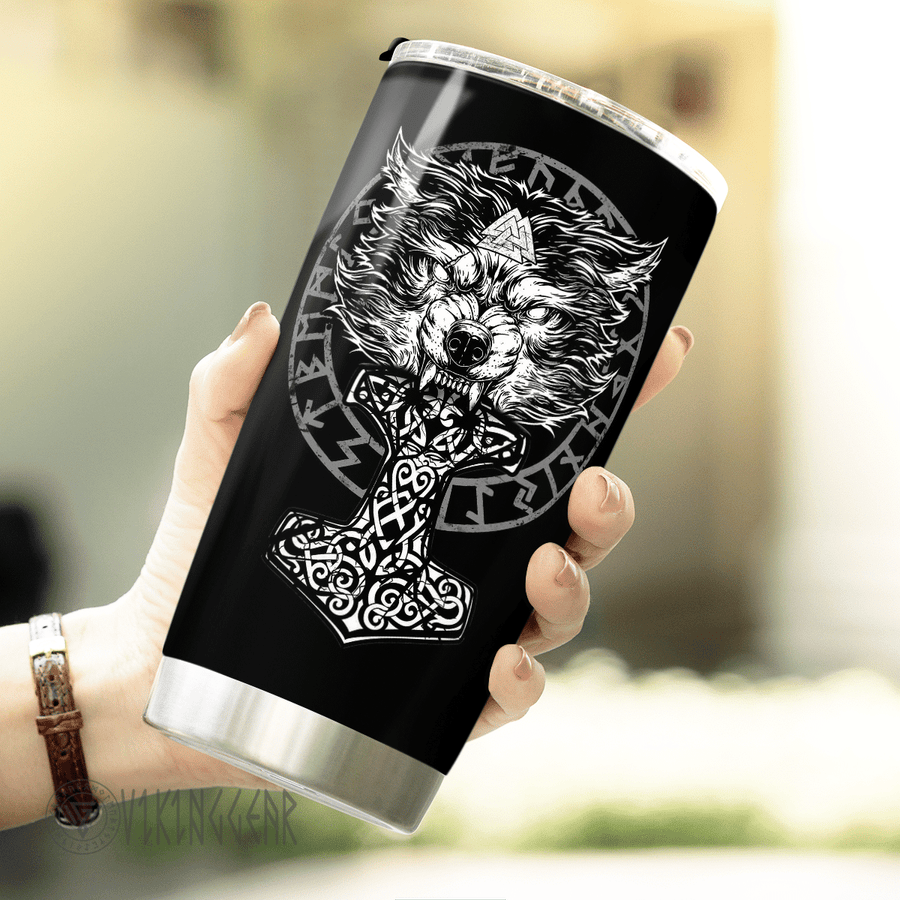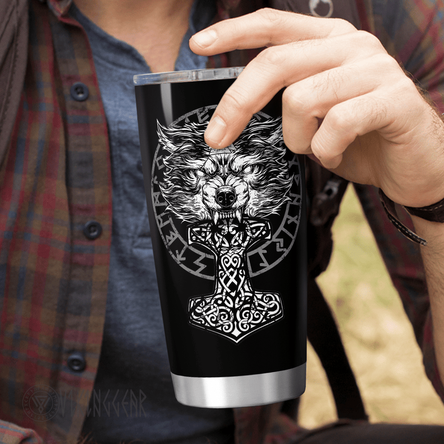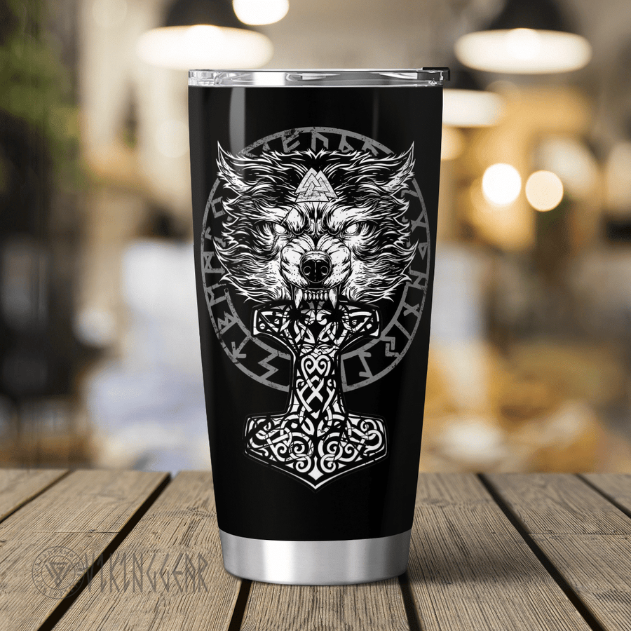 Wolf Hammer Raven Valknut – Viking Tumbler