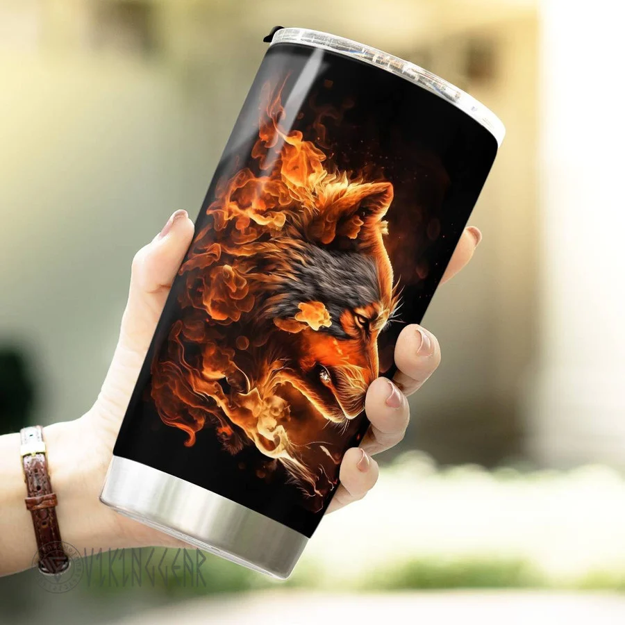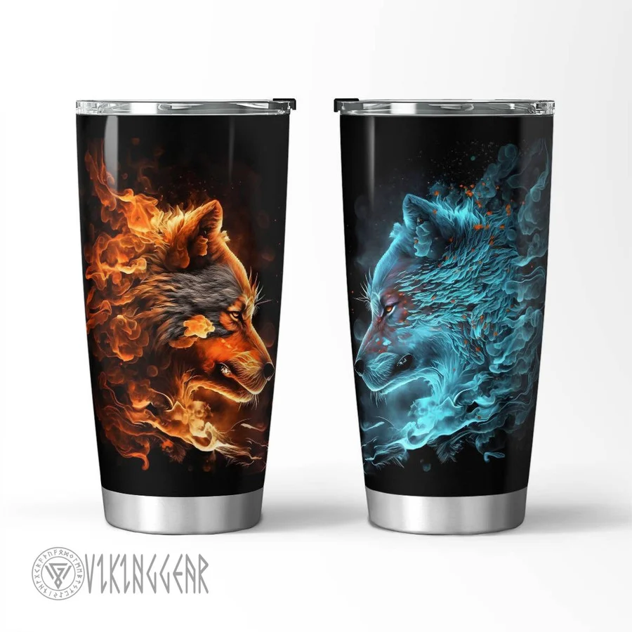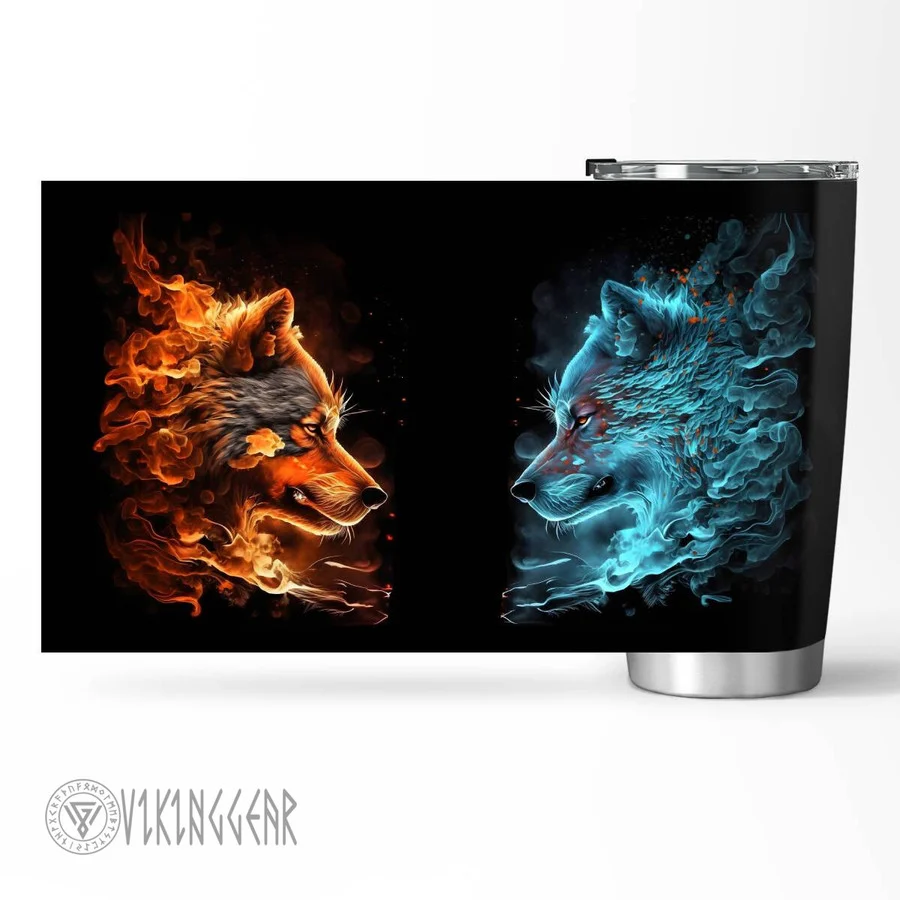 Wolf water and fire Viking Tumbler